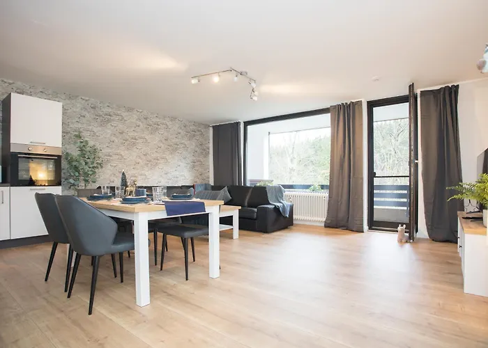 Apartmán Deluxe Apartment for 5 - Sauna & Pool - Free Parking je vzdálen 2 km od Bobová dráha Winterberg a poskytuje různé vybavení, jako golfové hřiště a zahrada. Nachází se ve městě Winterberg a kousek od Golfový klub Winterberg, areál zahrnuje kompletní kuchyni s mikrovlnnou troubou, rychlovarnou konvicí a chladničkou, a také 1 koupelen.